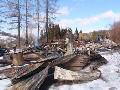 Witold Drygiel mieszka w takim piknym domu w Chmielu. No dodatek dom by te髒 dla niego miejscem pracy. Mieci si bowiem w nim warsztat stolarski. Warsztat to pr籀cz pomieszczenia sporo specjalistycznego stolarskiego sprztu, surowce i gotowe wyroby. Po髒ar kt籀ry wybuch w czwartkowe popoudnie 24 lutego zniszczy wszystko. Spony maszyny, surowce, gotowe wyroby, spon dom. Pozostaa kupa popiou.