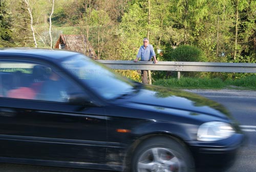 Powiedziano mi by pisa do Dyrektora to zrobi si przerw, tak by byo mo髒na przej. Czekam na to ju髒 trzy lata i nie mog si doczeka”. Na odpowied驕 nie czeka dugo. Przysza w poowie pa驕dziernika 2009 roku. GDDKiA odpowiedziaa- Istniejce zejcie po skarpie (schodki), jak r籀wnie髒 kadka nad potokiem, nie odpowiadaj warunkom technicznym i s w zym stanie technicznym. W zwizku z powy髒szym tut. oddzia nie mo髒e wykona przerwy w barierze ochronnej, gdy髒 nie mo髒e dopuci do powstania zagro髒enia jakie stwarza poruszanie si po przedmiotowym zejciu i kadce” Podziwu godna troska. Schody i kadk robi oddzia dr籀g publicznych w Sanoku, czyli obecna GDDKiA. Wtedy byo cacy, dzi jest ju髒 be. Niewa髒ne, 髒e Flak z rodzin korzysta z nich ju髒 ponad trzydzieci lat. Niewa髒ne, 髒e codziennie wielokrotnie pokonuje ruchliw drog. Niewa髒ne, 髒e najwikszym zagro髒eniem jest rzeczona bariera. Wa髒ne, 髒e jednym urzdniczym pocigniciem pozbyto si upierdliwego petenta. W eb wziy obietnice jakie na pimie skadano Flakowi. Tumaczy si mu, 髒e barierki nie mo髒na przedzieli bo mo髒e doj do wypadku takiego jak mia Kubica. Szuka si przer籀髒nych pierdoowatych wytumacze, byle tylko unikn wysania na kilka godzin ekipy i uczciwego zaatwienia sprawy. Z pomoc Flakowi przyszed tak髒e burmistrz Suuja. Sprowadzi komisj, sam by na miejscu gdy przyjechaa. Jednak i on dosta odpowied驕 podobn jak Flak. Zn籀w powoywano si na bezpieczestwo Flak籀w na schodkach i kadce. Zapominano o najwikszym zagro髒eniu, czyli wysokiej barierce.