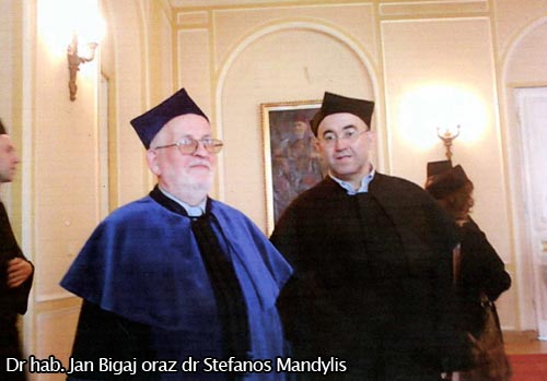 Na zdjciu obok pan dr hab. Jan Bigaj , a przy nim dr Stefanos Mandylis (Grek), w oczekiwaniu na uroczyste wrczanie dyplom籀w przez JM. Rektora UW. 驍yczymy sympatycznemu doktorowi habilitowanemu, wci髒 penemu modzieczej energii, stu lat, a przedtem profesury belwederskiej. Jego zdjcie z Prezydentem RP, mianujcym Go na profesora zwyczajnego, oczywicie zamiecimy na naszych amach. Obecnie, jak si dowiedzielimy, nasz „nadzwyczajny” profesor przystpuje do nowego przekadu Arystotelesowskiej Metafizyki na jzyk polski. Czekamy na poszczeg籀lne zeszyty, kt籀rych ma by 12, czekaj nasze biblioteki.