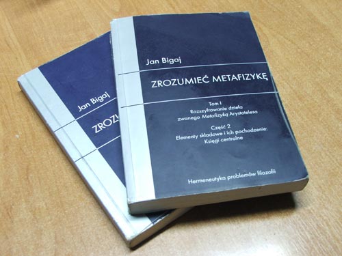 Autor przedstawia tam m. in. sensacyjne losy spucizny Arystotelesa oraz mozolne konstruowanie jednego z fundamentalnych dzie zachodniej cywilizacji, nazwanego Metafizyk. Habilitant przeprowadzi gruntown analiz starogreckiego oryginau tego jednego z najtrudniejszych dzie filozoficznych wszystkich czas籀w, a efekty jego bada stanowiy kanw kolokwium habilitacyjnego, odbytego 22 lutego br. przed Rad Wydziau Filozofii i Socjologii Uniwersytetu Warszawskiego. Jako temat nale髒cego do procedury habilitacyjnej wykadu Rada wybraa z trzech przedo髒onych przez habilitanta propozycji Przyczyny ruchu wedug szkoy perypatetyckiej, temat, z kt籀rym dr Bigaj wystpowa na zaproszenie prof. Eugeniusza Pastuszki przed modzie髒 Liceum Og籀lnoksztaccego w Ustrzykach Dolnych, ukazujc interesujce zmagania si filozof籀w przyrody z problemem ruchu, poprzedzajce teori grawitacji i teori wzgldnoci. Wedug opinii czonk籀w Rady kolokwium habilitacyjne pana Jana Bigaja nale髒ao do najbardziej interesujcych na tym Wydziale.