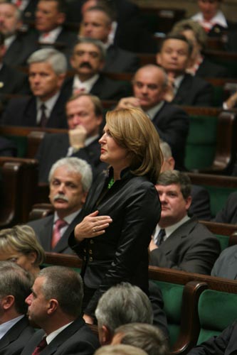 - To prawda. W籀jt gminy, przedsibiorca lub rolnik lepiej wiedz, jak gospodarowa pienidzmi, ni髒 urzdnik w Warszawie. Wa髒ne, 髒eby urzdnik w Warszawie im w tym nie przeszkadza. Prosz zwr籀ci te髒 uwag na jeszcze jedno. Odpowiedzialny w籀jt gminy nie we驕mie sobie na zastpc kogo z wyrokami sdowymi. Bo to byby dla niego wstyd! Tymczasem Jarosaw Kaczyski na funkcj wicepremiera rzdu IV RP powoa Andrzeja Leppera!