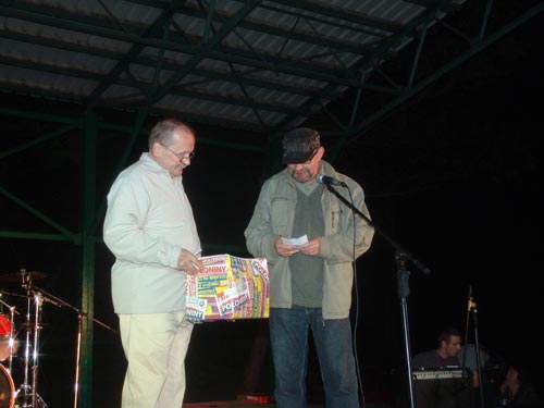Ka髒dy kto pr籀buje w tym roku zorganizowa imprez plenerow nara髒a si na ogromny stres. Taki mokry rok zdarza si bowiem raz na kilkanacie lat. Przekadalimy „Maj籀wk z Pooninami” trzykrotnie i w kocu postanowilimy, 髒e dalszych przesuni by nie mo髒e. Impreza musi si odby bo czytelnicy z niecierpliwoci czekaj na losowanie rocznicowych nagr籀d gazety. Zjechay zespoy muzyczne, rozo髒yy si stoiska, zaczli przychodzi ludzie. Pogoda o dziwo bya nieza. Niestety nie trwao to zbyt dugo. Tradycji stao si bowiem zado i deszczyk zacz pada. Nie da si ukry, ze ma to ogromny wpyw na ilo uczestnik籀w, ale zjawio si ich tyle, 髒e narzeka nie ma co. Na konkurs wpyno okoo 50 kopert z kuponami. To du髒o biorc pod uwag procent uczestnik籀w w stosunku do sprzeda髒y gazety.