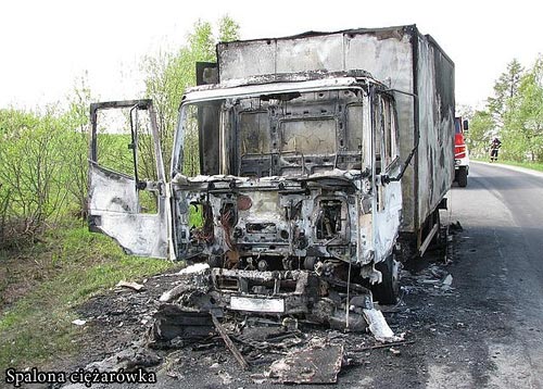 W godzinach popoudniowych w pitek 7 maja bie髒cego roku, na drodze W-896 pomidzy Czarn a Lutowiskami, doszo do po髒aru samochodu ci髒arowego marki Iveco. Mimo pr籀b gaszenia ognia podjtych przez kierowc, samoch籀d spon doszcztnie.