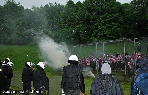 Mecz mia niespokojny przebieg, kibice dru髒yny goci zachowywali si agresywnie i prowokujco. Kilkakrotnie policja musiaa podejmowa interwencje. Wykonano szczeg籀ow dokumentacje fotograficzn i filmow, kt籀ra zostanie szczeg籀owo przeanalizowana w celu ustalenia personali籀w najbardziej agresywnych pseudokibic籀w. Nie unikn oni odpowiedzialnoci za swoje agresywne i prowokacyjne zachowanie, u髒ywanie wulgaryzm籀w, prowokowanie burd czy rzucanie petardami - zostan sporzdzone stosowne wnioski do sdu grodzkiego.