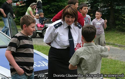 Natomiast w niedziel 13 czerwca funkcjonariusze policji bawili si razem z dziemi, uczc je jednoczenie podstawowych zasad bezpieczestwa.. Pretekstem byy obchody dni Ustrzyk Dolnych. Niedzielne popoudnie przeznaczono dla najmodszych, wic policjanci sw籀j program skierowali do dzieci. We wsp籀lnej zabawie m籀wili dzieciom o bezpieczestwie na drodze, o zasadach bezpiecznego wypoczynku podczas wakacji, a Maks (policyjna maskotka) pokazywa jak przyj prawidow pozycj chronic przed atakiem psa.