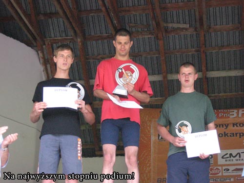 Krzy pojecha na te zawody po raz trzeci i po raz trzeci sign po zoto. Zwycistwu towarzysz zawsze atrakcyjne nagrody. W ubiegym roku Krzy przywi籀z z Pruchnika rower a w tym roku porzdny namiot. Tegoroczne zwycistwo nie przyszo atwo. Zaraz po starcie na czoo wysun si, debiutujcy w imprezie, zawodnik DS -u z opuszki Wielkiej, kt籀ry narzuci ostre tempo i przez p籀 dystansu Krzy musia patrzy na tyln opon jego roweru. Jednak w miar upywu czasu ustrzycki mistrz kolarski jecha coraz lepiej i ostatecznie wygra z wyra驕n przewag. W Pruchniku pojawi si nawet 髒art, 髒e mo髒e lepiej Ustrzyk nie zaprasza na zlot, bo przyjedzie Krzy i znowu wygra wszystko. Zwycizcy serdecznie gratulujemy. Jestemy z Ciebie dumni panie Krzyku.
