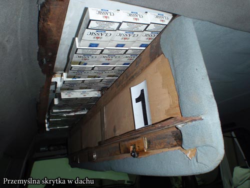 Ten wyjtkowo szczeg籀lny przypadek przemytu papieros籀w mia miejsce w sobot 7 sierpnia 2010 roku. Do odprawy zgosi si mieszkaniec Sambora podr籀髒ujcy samochodem Peugeot Partner. Pojazd „mody” w wietnym stanie technicznym, kierowca kreujcy si na biznesmena a wic wszystko w najlepszym porzdku i nic nie powinno wzbudzi podejrze polskich celnik籀w. Stao si jednak inaczej i Peugeot zosta skierowany na tak zwany kana, czyli na stanowisko szczeg籀owej kontroli. Wiele uwagi celnicy powicili dachowi pojazdu, jednak bez rezultatu. Wntrze samochodu byo doskonale utrzymane i nie nosio lad籀w najmniejszej nawet ingerencji z zewntrz. Podsufitka bya czyciutka, bez uszkodze i zabrudze. Przeomow okazaa si decyzja wykonania w suficie otworu i wprowadzenia do rodka wziernika endoskopowego.