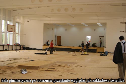 Jak powiedzia dyrektor szkoy Julian Czarnecki, remont jeszcze troch potrwa. Zostay g籀wnie roboty na zewntrz, czyli boiska, trawniki, chodniki. Dyrektora martwi to, 髒e jest to najgorsza pora do tego typu rob籀t, bo roboty ziemne to po prostu boto. Wypada mie jednak nadziej, 髒e ta jesie bdzie typow polsk zot jesieni i problem bota sam si rozwi髒e.