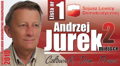 Popieramy kandydatur Andrzeja Jurka do Sejmiku Samorzdowego Wojew籀dztwa Podkarpackiego - Lista Nr 1 poz. 2 (SLD)