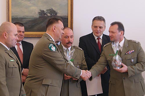 Zgodnie z wieloletni ju髒 tradycj tu髒 przed witami Bo髒ego Narodzenia na spotkaniu opatkowym spotkali si pogranicznicy. Tym razem funkcjonariusze Stra髒y Granicznej z Krocienka i Wojtkowej spotkali si w orodku wypoczynkowym Ministerstwa Sprawiedliwoci w Olszanicy. Penicy rol gospodarza Komendant PSG w Krocienku pk SG Robert Poszyski przywita zaproszonych goci oraz spor grup funkcjonariuszy SG obecnych na spotkaniu. 驍yczenia witeczne zo髒y Komendant Bieszczadzkiego oddziau SG Dominik Tracz. M籀wi miedzy innymi o tym, 髒e jemu samemu praca w Bieszczadach i z takim zespoem ludzi staje si coraz bli髒sza sercu. Przyjecha tutaj z zachodniej Polski i jak mu si wydawao mia zadanie do spenienia, jednak z upywem czasu i w miar poznawania zaogi Bieszczady staj si dla niego tym najwa髒niejszym miejscem na ziemi. Gomi spotkania byli miedzy innymi starosta bieszczadzki Krzysztof Gsior, kt籀ry podzikowa w imieniu wszystkich za zaproszenie oraz zo髒y funkcjonariuszom SG 髒yczenia owocnej pracy i szczliwych wit Bo髒ego Narodzenia. Podzikowa te髒 za poczucie bezpieczestwa jakie w du髒ej mierze zapewnia mieszkacom Bieszczad Stra髒 Graniczna. Wr籀d goci byli te髒 starosta leski Marek Pako, przewodniczcy Rady Powiatu Bieszczadzkiego Piotr Korczak, wiceburmistrz Ustrzyk Dolnych Jacek Przybya, w籀jtowie Olszanicy Krzysztof Zapaa, Cisnej Renata Szczepaska, przedstawiciele prokuratury, sdu, policji, bieszczadzkich nadlenictw, przedsibiorstw i instytucji wsp籀pracujcych ze Stra髒 Graniczn.