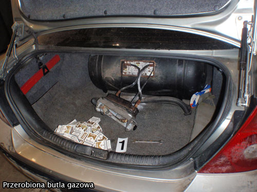 Najog籀lniej rzecz ujmujc pomys skrytki polega na umieszczeniu butli w butli. W butli wewntrznej znajdowaa si skrytka na papierosy, za zewntrzna bya wypeniona gazem. Przemylno skrytki polegaa na tym, 髒e konstrukcja jej pozwalaa na pakowanie i wyjmowanie kontrabandy bez uszczerbku dla szczelnoci butli zewntrznej. Dostp do skrytki mo髒liwy by poprzez panel sterowania, do kt籀rego przymocowane byy wszystkie przewody. W odkrytej skrytce znajdowao si 450 paczek papieros籀w. Papierosy skonfiskowano a samoch籀d zatrzymano do dyspozycji sdu. Dodatkowo, na poczet przyszej kary, zatrzymano jeszcze kwot okoo 2 tysicy zotych, jak posiada przy sobie kierowca Forda. Nie jest to pierwszy przypadek przemytu z wykorzystaniem butli gazowej. Poniewa髒 proceder ten jest szczeg籀lnie niebezpieczny, sprawcy takiego przemytu bd bardzo surowo karani. Poza kar za przemyt otrzymaj dodatkow kar za sprowadzenie bezporedniego niebezpieczestwa utraty zdrowia i 髒ycia.