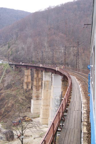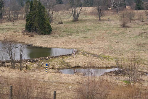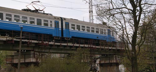 Wracamy do stacji. Pocig co nas Polak籀w dziwi przyje髒d髒a zaledwie z 2 minutowym op籀驕nieniem. Przejazd do Sianek kosztuje 5 hrywien czyli jakie 2 z. Tyle co nic. Trasa robi wra髒enie. Pocig jedzie serpentynami zrobionymi w przecigu trzech lat poczynajc od 1870 roku. Woosianka za ka髒dym mijanym tunelem widziana jest raz z jednej strony wagonu, raz z drugiej strony. Dech zapiera przejazd przez kilkudziesiciometrowej wysokoci wiadukt. W kocu docieramy do przeczy U髒ockiej poo髒onej na wysokoci 853 metr籀w. Tu髒 za przecz jakie dwadziecia metr籀w od pocigu cieniutka stru髒ka Sanu przegradzana bobrowymi 髒eremiami. Po obu stronach Sanu supy graniczne. San tutaj na niewielkim odcinku jest rzek graniczn. Gdyby nie granica mielibymy do Polski te zaledwie te kilkadziesit metr籀w. Po dw籀ch kilometrach wje髒d髒amy do Sianek. W okresie midzywojennym znany kurort zimowy nale髒cy w caoci do Polski. Dzi po Polskiej stronie nie ma nic, a ukraiskie Sianki to spora miejscowo z du髒 stacj kolejow.