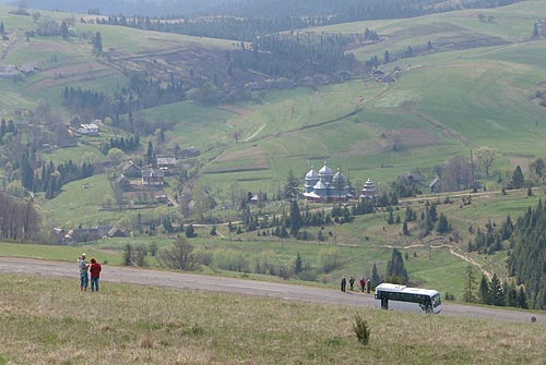 Stad powr籀t do Polski. Po drodze wpadamy do Turki. Tutaj wizyta w polskim kociele. Barokowa witynia mocno zaniedbana za czas籀w ZSRR dzi powoli si odbudowuje. Warto wic wspom籀c koci籀 jakimi pieni髒kami, bo tutejszych Polak籀w jest zaledwie kilkudziesiciu. Przed Turk du髒e wzniesienie zwieczone wie髒 zwane Szymonk. Std wspaniay widok na polskie Bieszczady.