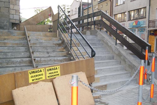 Wejcie do domu handlowego „Halicz” w Ustrzykach Dolnych od strony g籀wnej ulicy byo do niedawna karkoomn i ryzykown wspinaczk, szczeg籀lnie w zimie. Jak wida firma wzia to sobie do serca, bo w tym miesicu ruszya robota przy schodach i ju髒 niebawem bd one wyglday cakiem przyzwoicie.