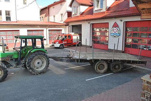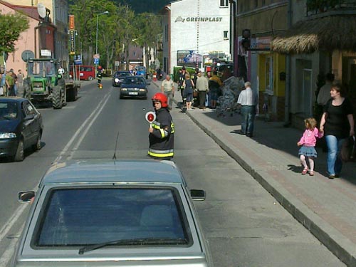 W籀wczas przyczepa odczepia si od cignika, wjechaa na chodnik i uderzya metalowym zaczepem w okno wystawowe sklepu. W tym czasie przed sklepem staa moda kobieta, kt籀ra na widok nadje髒d髒ajcej przyczepy odskoczya do tyu i upada. W wyniku zdarzenia kobieta doznaa lekkich obra髒e. Przebywajca wewntrz wacicielka sklepu nie ucierpiaa. Wstpnie straty oszacowano na kwot 10 tys. zotych. Kierujcy cignikiem 54-letni mieszkaniec gm. Ustrzyki Dolne by trze驕wy.