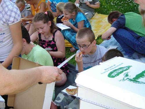 Gdy energii zaczynao brakowa wszyscy paaszowali kiebas z grilla oraz pizz z Pizzerii „Orlik” w Ustrzykach Dolnych. Rodzice i dzieci skorzystali te髒 ze sodkiego poczstunku.