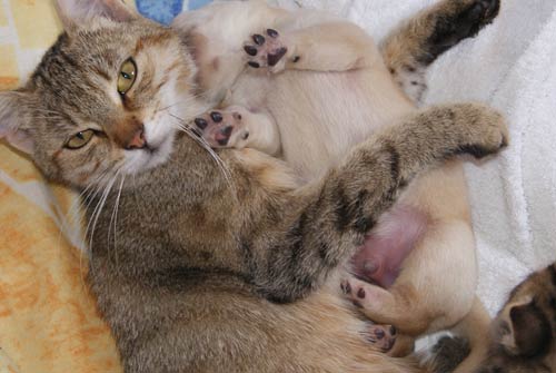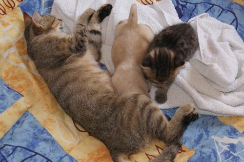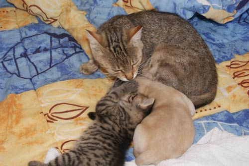 Przysowie m籀wi, 髒e wanie pies z kotem dogada si nie mog. Okazuje si jednak, 髒e od tej reguy s wyjtki i to jak髒e sympatyczne, czego dowodem mog by zdjcia zrobione u Adama Konopelskiego. Suka labradora zdecha w trakcie porodu, pozostawiajc przy 髒yciu mae szczeni. Zachodzia konieczno znalezienia jak najszybciej zastpczej matki dla szczeniaka. Pan Adam wpad na pomys by rol t wzia na siebie moda kotka, kt籀ra te髒 w tym samym czasie si okocia.