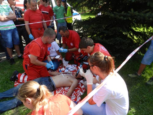 Dwunastego wrzenia w „Parku pod Dbami” moglimy zobaczy jak postpi w przypadku wypadku samochodowego z udziaem dziecka, rowerzysty z otwartym zamaniem nogi, rannych z ranami postrzaowymi, z ran kut klatki piersiowej, omdleniami, krwotokiem z nosa, ukszeniami przez 髒mij.