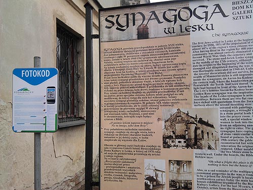 na rozmaite formy informacji o danym terenie. Przykadem zastosowanie nowoczesnych rozwiza, jest tablica kt籀ra zostaa umieszczona obok Synagogi w Lesku.
