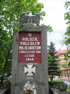Wida w Lesku nikomu taki pomnik nie przeszkadza. W centrum tu髒 obok ratusza stoi jeszcze jeden pomnik –„ W hodzie polegym Milicjantom –Spoeczestwo Leskie 1946”. Ten pomnik to symbol Leska. Wanie Lesko byo siedzib powiatu obejmujcego swym zasigiem praktycznie cae Bieszczady. To z Leska wyje髒d髒ali w g籀ry milicjanci by walczy z oddziaami UPA, to z Leska wyjecha w sw ostatnia podr籀髒 wiceminister obrony genera Karol wierczewski. Wic pomnik taki jest wedug leszczan jak najbardziej na miejscu i nie ma si go czego wstydzi.
