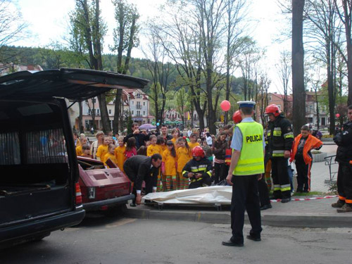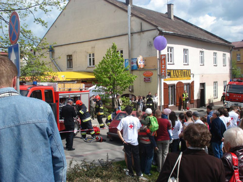 W zakleszczonym samochodzie znajdoway si poszkodowane osoby. Dziki szybkiej akcji stra髒ak籀w, kt籀rzy praktycznie pocili specjalistycznym sprztem samoch籀d, lekarz bardzo szybko m籀g dosta si do poszkodowanych i podj akcj ratunkow. Miejsce caego zdarzenia zabezpieczay radiowozy policyjne. Wszystko wygldao tak realistycznie, 髒e ci kt籀rzy przyszli w trakcie pokazu pytali co si stao.