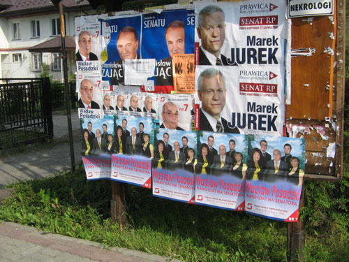 Wybory uzupeniajce do Senatu jakie odbyy si ostatnio w okrgu kroniesko- przemyskim zaowocoway midzy innymi ostr walk na plakaty toczon przez kandydat籀w na senatora. W Ustrzykach wygray ja sztaby wyborcze Stanisawa Zajca, Wacawa Posadzkiego i w nieco mniejszym stopniu Marka Jurka. Na tydzie przed wyborami, 髒adne inne ogoszenie nie miao szans zaistnie na du髒ej na tablicy ogosze. Wyjtkiem byy jedynie wyodrbnione miejsca na klepsydry.