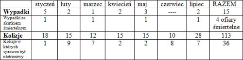 W ostatnim okresie czasu na terenie powiatu bieszczadzkiego doszo do wielu wypadk籀w i kolizji drogowych. Nie maa ich liczba zdarzya si kiedy kierujcy pojazdem by w stanie nietrze驕woci. Tylko w lipcu doszo do 28 kolizji i dw籀ch wypadk籀w , w kt籀rym jedna osoba zgina. Siedmiu sprawc籀w kolizji i wypadk籀w byo pod wpywem alkoholu. Policja zwraca si do wszystkich u髒ytkownik籀w dr籀g: pieszych, rowerzyst籀w, kierujcych wszystkimi pojazdami mechanicznymi o rozwag. Zdejmijmy nog z gazu, zwracajmy uwag na znaki drogowe. Nie wsiadamy za kierownic samochodu, motoru czy nawet roweru kiedy wczeniej pilimy alkohol. Bd驕my ostro髒niejsi. Jed驕my z rozwag.