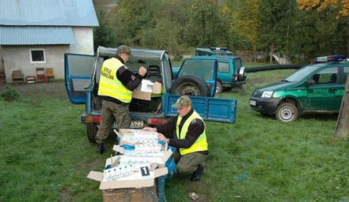 W momencie gdy przemytnicy przewozili towar samochodem terenowym marki „Suzuki” nale髒cym do jednego z nich, zostali zatrzymani. W zatrzymanym samochodzie znaleziono 400 karton籀w papieros籀w bez polskich znak籀w akcyzy. Zatrzymani na gorcym uczynku nie przekraczali polskiej granicy pastwowej a tylko dokonali przejcia towaru przerzuconego ze strony ukraiskiej. Przemytnikami okazali si mieszkacy Ustrzyk Dolnych Rafa D. i Tomasz L. a w wyniku prowadzonych dziaa operacyjnych zatrzymano kolejn osob. Warto rynkow zarekwirowanego towaru wyceniono na 30.000 zotych. Zamieszczone obok zdjcia ilustruj prac funkcjonariuszy Stra髒y Granicznej przy tej sprawie.