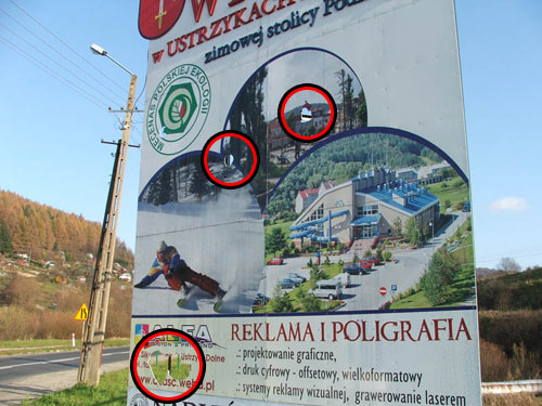 W dniu 9 listopada 2008 r. prawdopodobnie w godzinach wieczornych nieznani sprawcy zniszczyli tablice reklamow nale髒ca do Urzdu Miejskiego w Ustrzykach Dolnych. Czyn ten jest aktem wandalizmu.