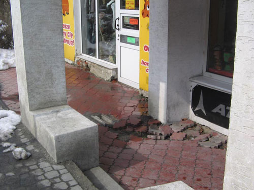 Specjalnie nie pokazujemy go w caej „okazaoci” by da jeszcze szans wacicielowi i prowadzcym tam sklepy na chwil refleksji i podjcia krok籀w zmierzajcych do poprawy istniejcego stanu. Tym bardziej, 髒e powyrywana i niezabezpieczona kostka chodnikowa grozi wypadkiem i kalectwem. Czy warto si wic nara髒a. Mo髒e lepiej omija to miejsce z daleka.