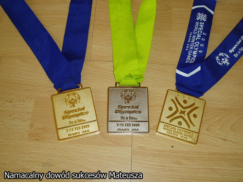 Zawodnikom Olimpiad specjalnych przywieca wspaniae motto kt籀re brzmi: „Pragn zwyci髒y, lecz jeli nie bd m籀g zwyci髒y, niech bd dzielny w swym wysiku”. Sowa te po raz pierwszy wypowiedziaa pani Eunice Kennedy Shriver w dniu 20 lipca 1968 roku podczas otwarcia I Midzynarodowych Letnich Igrzysk Olimpiad Specjalnych w amerykaskim Chicago. A tak naprawd to wszystko zaczo si pi lat wczeniej kiedy to wspomniana pani Kennedy Shriver zorganizowaa pierwsz p籀koloni sportow dla os籀b z niesprawnoci intelektualn. Ta niezwyka kobieta z klanu Kennedych, siostra nie髒yjcego prezydenta USA Johna Fitzgeralda Kennedy̕ego powicia si tej sprawie bez reszty, nie szczdzc na ten cel czasu i pienidzy. Jednym z otwierajcych VIII wiatowe Zimowe Igrzyska Olimpiad Specjalnych w Idaho by znany aktor a obecnie Gubernator Kalifornii Arnold Schwarzenegger, prywatnie zi pani Eunice Kennedy Shriver . Idea Olimpiad Specjalnych dotara do Polski w latach osiemdziesitych ubiegego wieku a w 1985 roku przy Zarzdzie G籀wnym Towarzystwa Przyjaci籀 Dzieci powstaa Og籀lnopolska Rada Olimpiad Specjalnych. Ogromnym wyr籀髒nieniem dla Polski jest przyznanie jej prawa organizacji Europejskich Letnich Igrzysk Olimpiad Specjalnych, kt籀re odbd si w Warszawie w2010 roku. Mateuszowi Koluchowi, jego trenerce oraz wszystkim kt籀rzy przyczynili si do jego sukcesu, serdecznie gratulujemy.