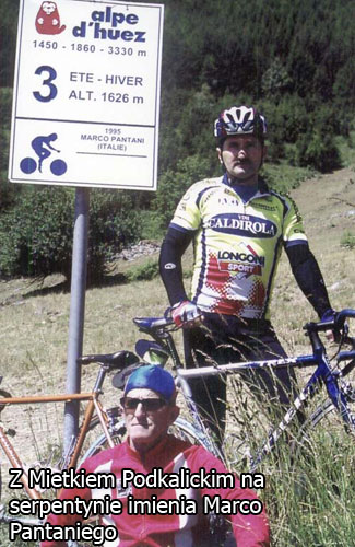 Można tu ujrzeć nazwiska największych sław kolarstwa światowego takich jak Lance Armstrong czy tragicznie zmarły Marco Pantani, który w roku 1997 pokonał górę w 37 minut i 35 sekund, co do dzisiaj jest rekordem trasy. Staszek Nahajowski pokonał tę trasę w 75 minut a miało to miejsce w dniu 9 lipca 2005 roku, podczas drugiego startu w wyścigu. Jest to wyczyn nie lada, zważywszy na wiek i fakt, że w przeciwieństwie do zawodowców czternastokilometrowy podjazd do L'Alpe d'Huez nie był oddzielną jazdą indywidualną na czas, ale końcówką etapu, na którą wjeżdżało się po przejechaniu 160 kilometrów.