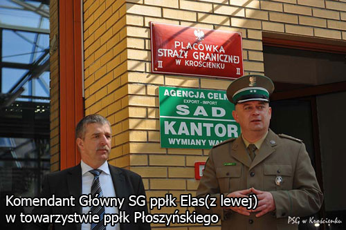W dniu 29 kwietnia bie髒cego roku Plac籀wka Stra髒y Granicznej w Krocienku doczekaa si szczeg籀lnej wizyty. Po raz pierwszy w historii tej jednostki zostaa ona odwiedzona przez Komendanta G籀wnego Stra髒y Granicznej. Odwiedziny miay miejsce w ramach wizytacji Bieszczadzkiego Oddziau Stra髒y Granicznej a Komendantowi G籀wnemu ppk Leszkowi Elasowi towarzyszyli: dyrektor Departamentu Analiz i Rozwoju Ministerstwa Spraw Wewntrznych Jacek Zalewski, zastpca Komendanta G籀wnego SG ppk Tomasz Pest oraz dyrektor Biura Wsp籀pracy Midzynarodowej Stra髒y Granicznej kpt. Aleksandra witecka. Przejcie graniczne w Krocienku jest jedynym na polsko- ukraiskiej granicy, na kt籀rym odprawy podr籀髒nych przeprowadzane s wsp籀lnie przez polskie i ukraiskie su髒by graniczne.