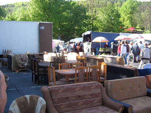 Jak na razie w targowe rody i handlowe pitki kupcy rozkadaj swoje stragany na zielonym rynku, praktycznie rzecz biorc blokujc cakowicie dojazd do sklep籀w zlokalizowanych nad rzek. Natomiast na parkingu rozrzucone stoiska dw籀ch, czy trzech kupc籀w, plus handlujcych meblami zajmuj ponad jedn trzeci miejsca.