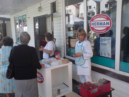 W targow rod 27 maja bie髒cego roku na ustrzyckim jarmarku mo髒na byo wyczu smakowite zapachy opiekanych na ruszcie wdlin. Przed sklepem firmowym Zakad籀w Misnych „Herman” z podrzeszowskiej Kielnarowej ustawiono stoisko, na kt籀rym przygotowywano gorce produkty tej znanej w regionie firmy.