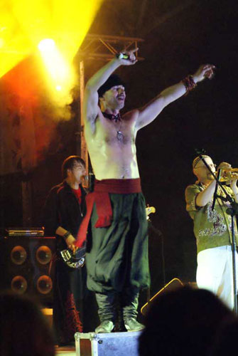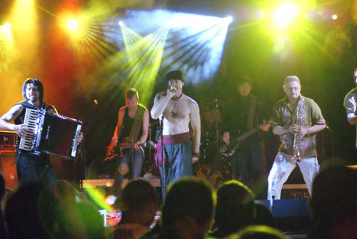 Tylko nieliczni mieszkacy Ustrzyk znali ukraiski zesp籀 Haydamaky. Za zesp籀 istnieje ju髒 od 18 lat. Zaczynali w Kijowie jako zesp籀 Aktus. Nieco p籀驕niej doczyli do zespou muzycy zafascynowani folkiem obecny solista zespou pochodzcy z Czarnobyla Oleksandr Jarmoly i Iwan Leno. Nazw Haydamaky grupa przyja w 2001 roku po podpisaniu kontraktu z wytw籀rni EMI. Do tej pory zesp籀 wyda pi pyt, kt籀re okupuj listy przeboj籀w na Ukrainie w Niemczech, Holandii, Kanadzie. Zesp籀 w tym roku koncertowa w Szwecji, Austrii, Holandii, Niemczech, Kanadzie, na Wgrzech w Rumuni i wielokrotnie w Polsce. Jako ciekawostk warto doda, 髒e rodzina grajcego na akordeonie Iwana Lenko pochodzi z Bieszczad. W zespole graj tak髒e basista Woodymyr Szwerstuk, basista Oleksand Demyanenko, pochodzcy z Modawii grajcy na gitarze Eugieniu Didyc oraz grajcy w zespole od samego pocztku perkusista Ruslan Dvras.