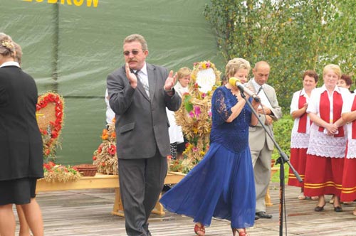 Podczas oficjalnej czci do髒ynek zosta wrczony W籀jtowi Zbigniewowi Sawiskiemu chleb przez starost籀w do髒ynkowych Helen Kucharz i Tadeusza Cycaka.