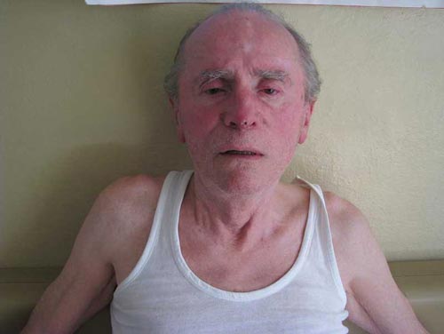 Przewieziono m髒czyzn w wieku ok. 65-75 lat, szczupej budowy ciaa, wzrostu ok. 168 cm, waga 56 kg, twarz podu髒na, wosy siwe zaczesane do g籀ry, brwi krzaczaste, na grzbiecie lewej doni pomidzy kciukiem, a palcem wskazujcym tatua髒 z wizerunkiem „ kotwicy”, na lewej skroni przebarwienie koloru brzowego.