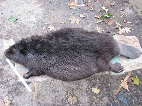 Policjanci zatrzymali nietrze驕wego kierujcego. M髒czyzna w baga髒niku swojego samochodu przewozi martwego bobra.