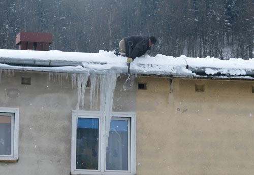 W Sp籀dzielni „Drzewiarz” wybrano drugi wariant, czyli strcania pot髒nych sopli z dachu i wywo髒enia niegu z osiedlowych uliczek.