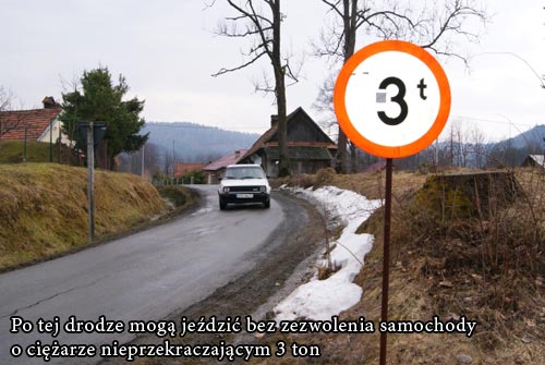 Wszystkie te podłączenia powstały na dziko, bez jakichkolwiek planów i pozwoleń na budowę. Dodatkowo nasi rozmówcy poinformowali nas, że jedno z domostw w ogóle nie płaci za wodę, bo posiada jakąś umowę zawartą jeszcze z ZBL –em. I to właśnie owe nielegalne podłączenia mają być przyczyną z powodu, której gmina Czarna nie może przejąć od Nadleśnictwa wodociągu i oczyszczalni. Oddzielną sprawą, jaka wynikła na miejscu jest problem korzystania z przebiegającej przez wieś drogi gminnej, przez pojazdy wywożące drewno. Zdaniem mieszkańców, przeładowane ciężarówki z drewnem poruszają się po tej drodze, mimo istniejącego ograniczenia dopuszczalnej masy całkowitej pojazdów do 3 ton. Zlokalizowane w bezpośrednim sąsiedztwie drogi dwa ogromne składy drewna posiadają takie zapasy surowca, że ich wywiezienie doprowadzi drogę do całkowitej ruiny. Według naszych rozmówców interwencje w tej sprawie nie mają sensu, bo cały ten proceder odbywa się z zgodą Wójta Gminy Czarna. Po wykonaniu niezbędnej dokumentacji fotograficznej przystąpiłem do rzeczowej weryfikacji pozyskanych informacji.