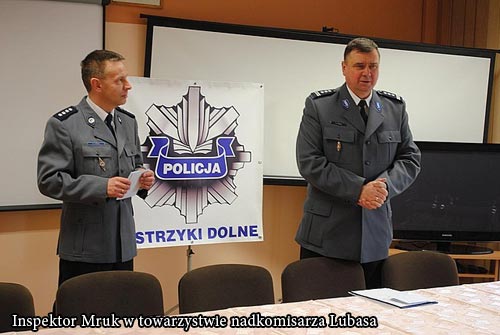 Celem wizyty komendanta byo wyr籀髒nienie policjant籀w, kt籀rych dziaania pozwoliy na ujawnienie i zatrzymanie w dniu 31 marca 2010 roku, sprawc籀w podrabiania pienidzy i wprowadzania ich do obiegu. Inspektor Mruk pogratulowa podkomisarzowi Rolandowi Szczepanikowi - naczelnikowi Wydziau Kryminalnego oraz policjantom tego wydziau. Funkcjonariusze otrzymali nagrody pieni髒ne od Podkarpackiego Komendanta Wojew籀dzkiego Policji i od Komendanta Powiatowego Policji w Ustrzykach Dolnych nadkomisarza Aleksandra Lubasa.